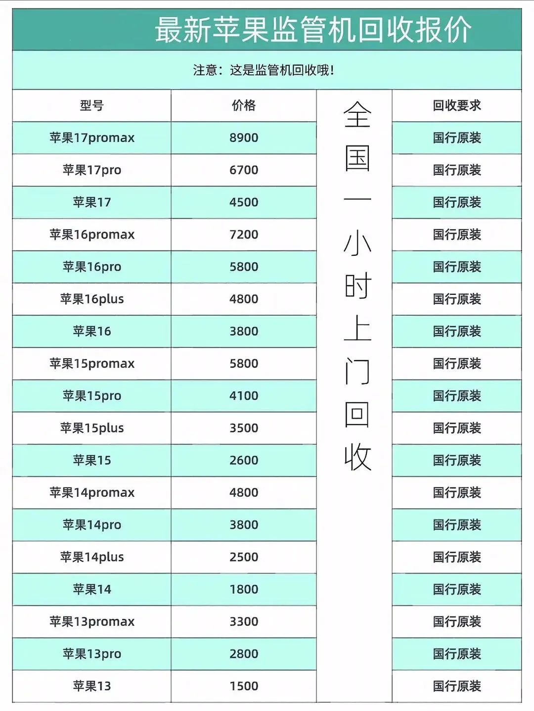 监管机回收新行情,苹果17系列监管机全部高价收!