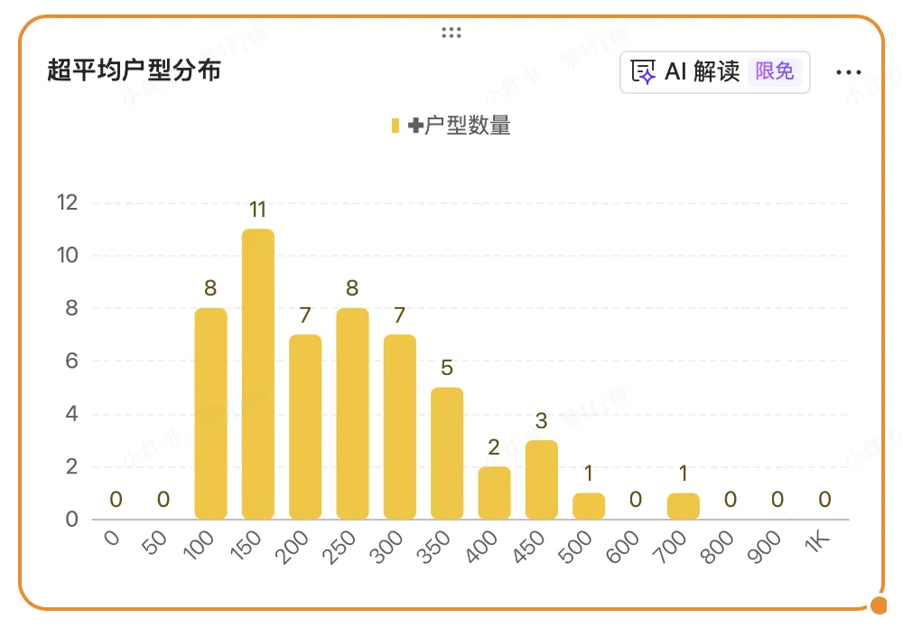 这个区间一共有12组户型,其中的7组户型销售比率超过市场整体水平,占比不小。