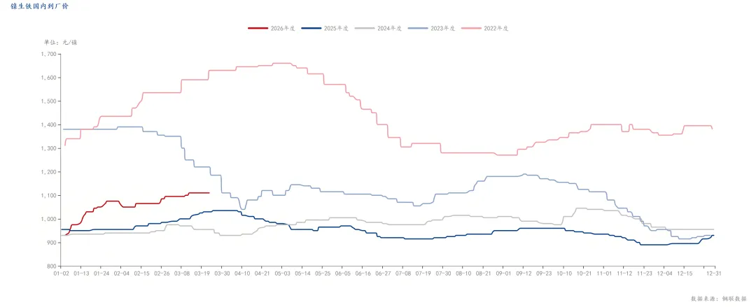 镍:受印尼镍矿配额缩减预期及地缘局势影响,镍铁价格震荡运行;上周在成本支撑及刚需采购推动下,成交密集落地,最新高镍铁采购成交价1110-1117元/镍(舱底含税),镍铁整体议价区间上移。