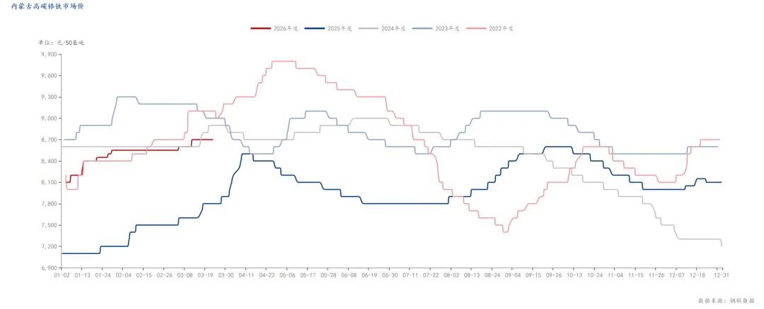 铬:受国际局势影响海运费持续探涨,铬矿成本有所走高。 太钢及青山4月铬铁长协价均环比上涨150元,至8195元/50基吨及8395元/50基吨,符合市场前期看涨的趋势,铬铁厂挺价意愿强。