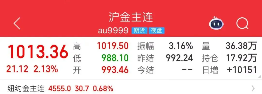 今日国内黄金市场在千元关口反复拉锯后,终于稳稳站上1000元/克整数位,截至下午2点,报价在1013.36元/克。