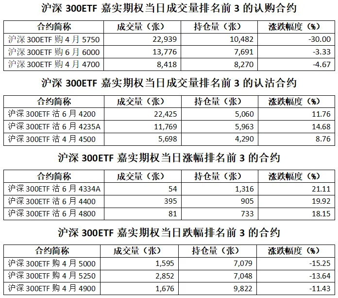 沪深300ETF嘉实期权总成交面额72.76亿元,增加8.98%,期现成交比为0.02,权利金成交额0.71亿元;期权总成交量147,977张,增加12.19%,其中认购期权成交量78,100张,认沽期权成交量69,877张,认沽认购成交比率为0.89(上一交易日认沽认购成交比率为0.50)。