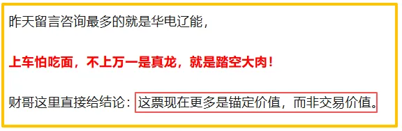 就拿上周的华电辽能来说,当时后台一堆兄弟问财哥。