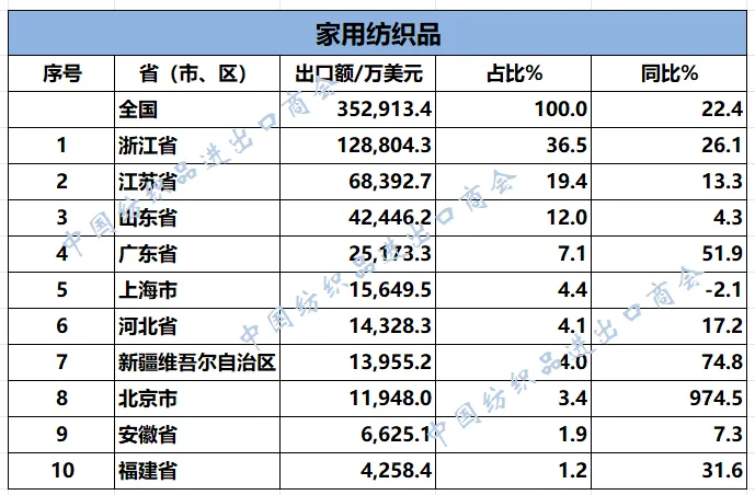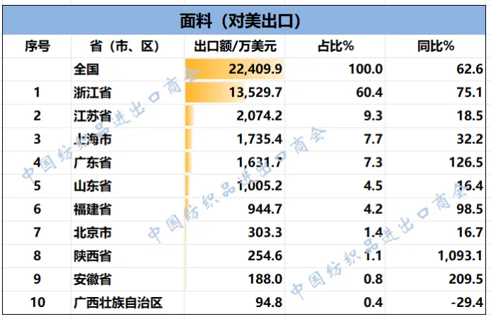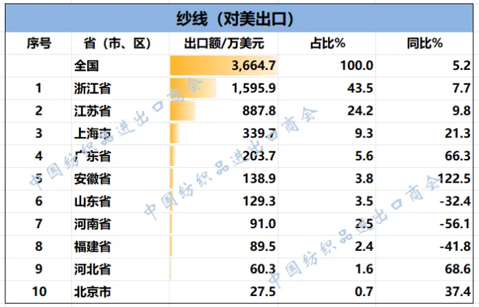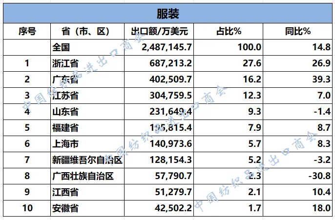 2026年1-2月,纺织服装类重点商品对美出口前十名的省(市、区)