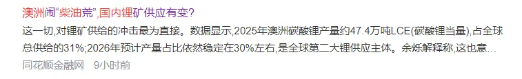1.澳洲锂矿供应告急:澳大利亚贡献全球约30% 锂供给,但其国内柴油储备仅能支撑至 4 月中旬,且锂矿未被纳入优先保供名录。