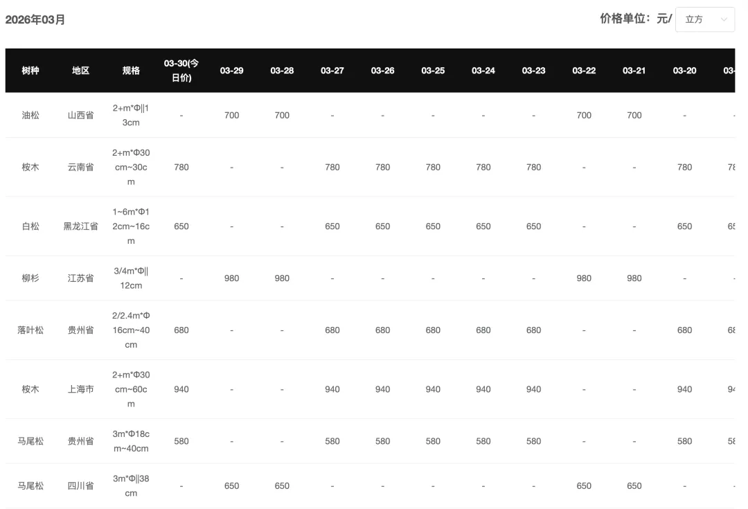 今日松木原木价格持稳运行。其中采木网平台合作报价商——山东青岛地区客户云杉(11.8m,20-28cm)报价1180元/方,湖南衡阳地区客户杉木报价650元/吨。价格市场整体运行平稳,未现大幅震荡态势。