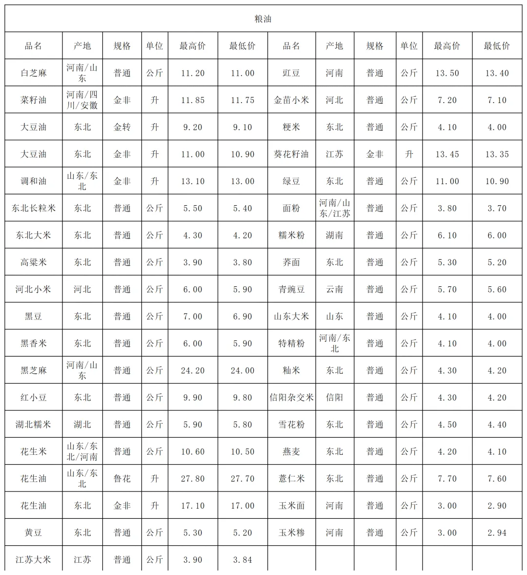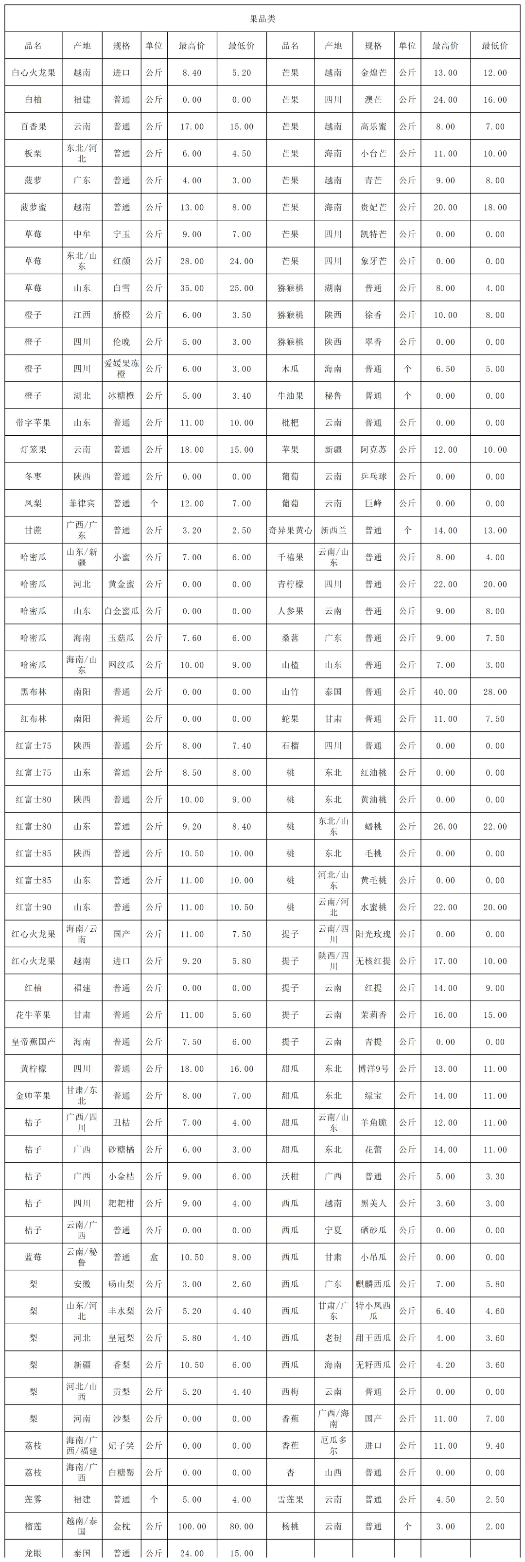 3月30日价格公示