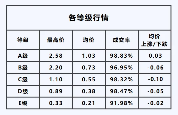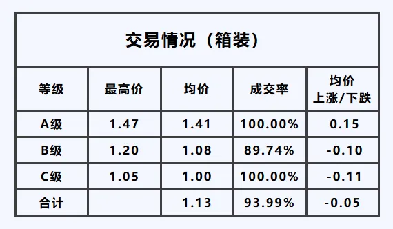C1级——最高价1.05元/枝,均价较昨日,下跌0.11元/枝。