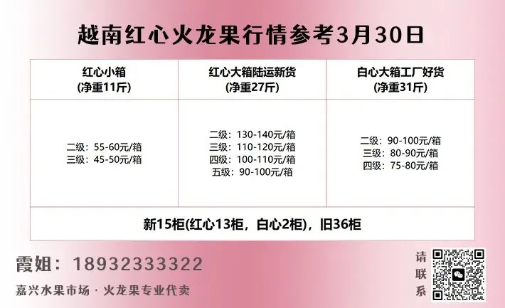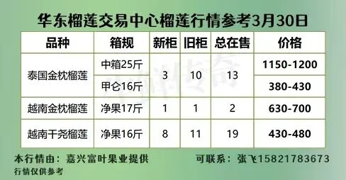 >3月30日华东水果市场榴莲、火龙果行情参考