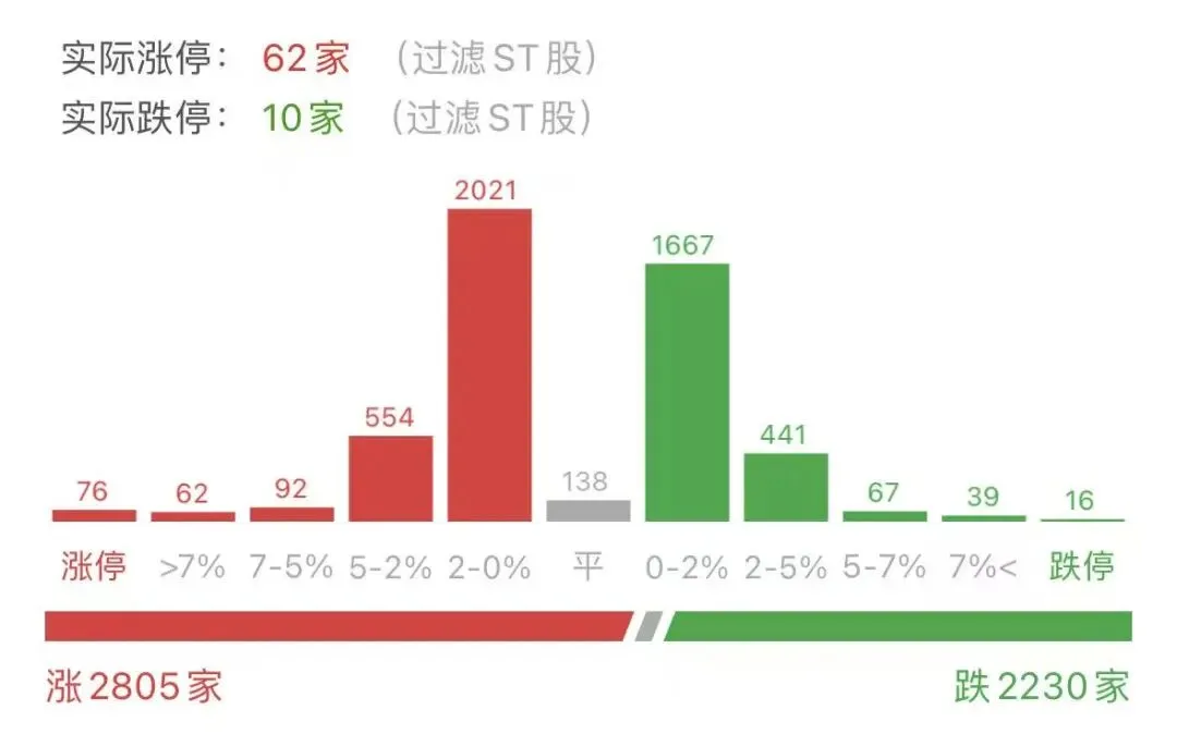 全市场超2800只个股上涨。