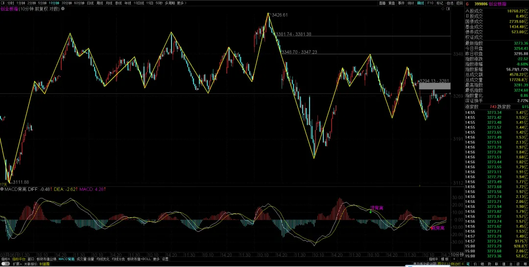 创业板指数10分钟图(下图)