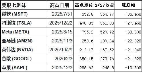 美股七姐妹除了苹果继续下跌。