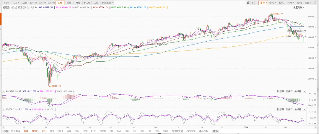 美国指数走势很不好,三大指数均在均线以下,除了年线,所有均线向下排列,走熊的迹象越来越明显。