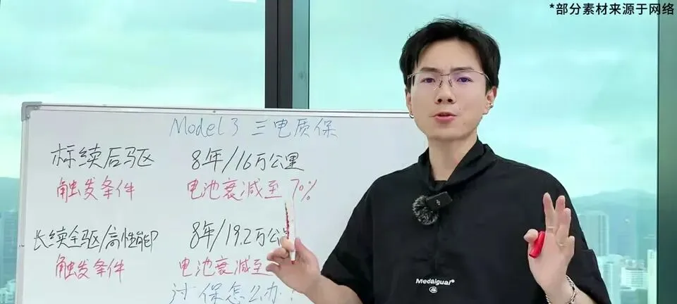 “特斯拉的质保有两种,标续后驱8年16万公里,长续航全驱以及高性能P版8年19.2万公里。”