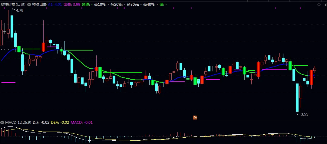 ✅ 均线过滤噪音:用14日和25日综合价格均线,平滑日内波动,红K站上均线就是多头趋势,黄K直接躺平观望,一眼看清能不能买。✅ 出击抓拐点:当快线上升速率由负转正,主图跳出“出击”标记,这个位置是近期K线实体半分位,代表多空平衡被突破!去年11月的某储能股,出现信号后我半仓跟进,12天涨幅超35%,直接把之前亏的赚回大半。✅ 阶梯目标位:内置“盈10%”到“盈40%”目标位,解决“拿不住票”的心理难题!上个月的某AI芯片股,启动后我盯着盈20%目标位,到点果断止盈,5天赚了18%就落袋为安,再也不会在拉升初期被甩下车。