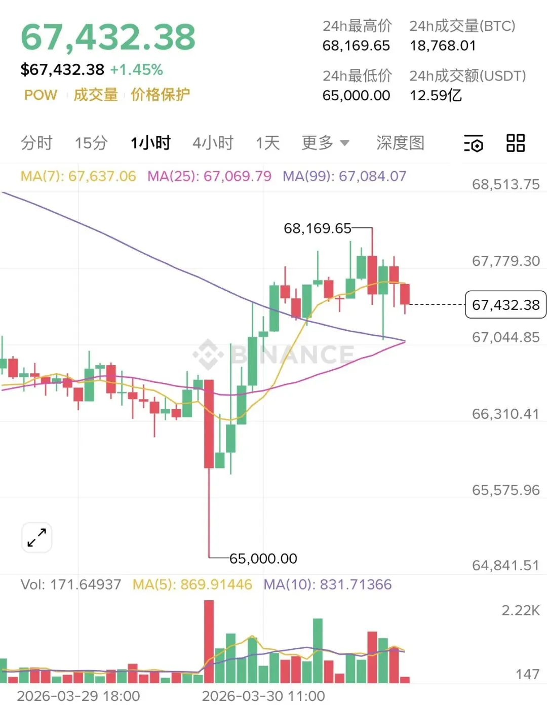 大饼66500附近多,目标关注68000-68500