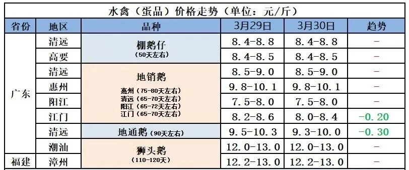 2026年3月31日全国鲜鸭蛋价格