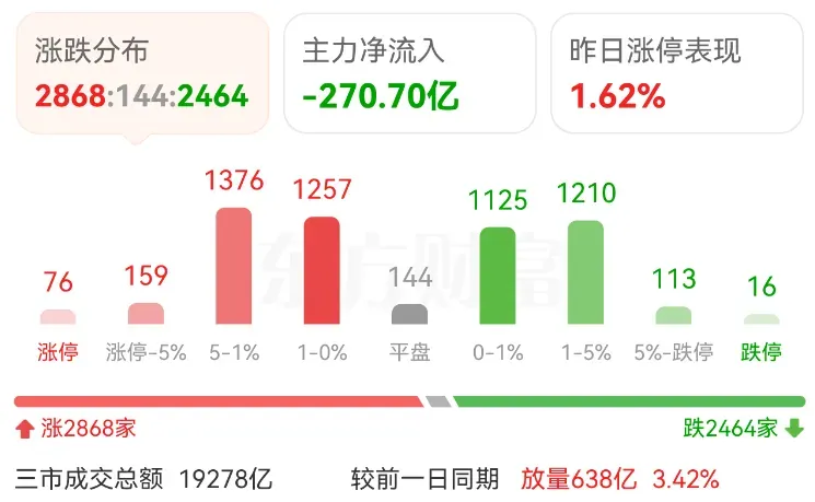 个股2867上涨,中位数+0.15%,市场情绪也不差。两市成交1.93万亿,虽然放量638亿!但已经连续三天不足2万亿,量能还是比较低迷。