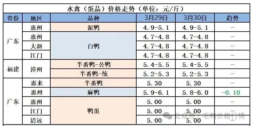 白鸭种蛋报涨 ,实蛋情绪一般,包苗保价蛋价窄幅波动。