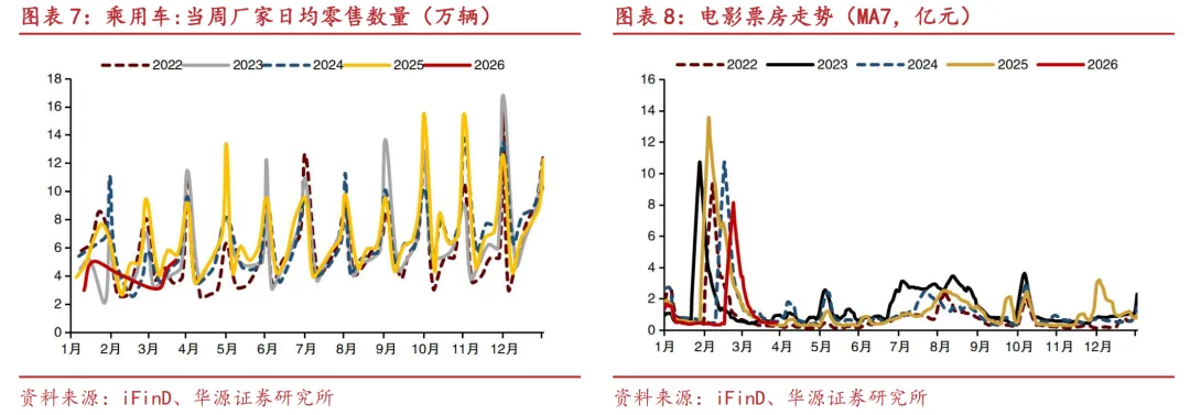 截至3月22日,当周乘用车厂家日均零售数量为5.1万辆,同比-7.0%,当周乘用车厂家日均批发数量为6.2万辆,同比-3.0%。截至3月27日,近7天全国电影票房收入合计为32120.5万元,同比+35.1%。