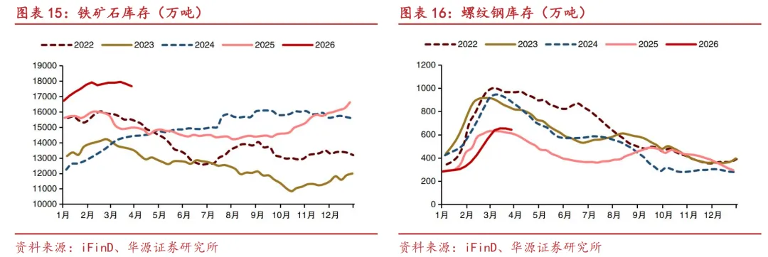截至3月27日,当周铁矿石库存为17666.8万吨,同比+17.9%,当周螺纹钢库存为642.8万吨,同比+5.4%,当周浮法玻璃企业库存为7362.2万吨,同比+9.9%。