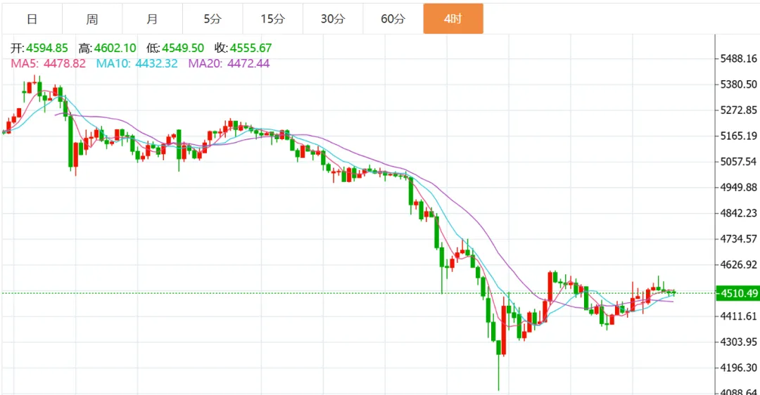 接下来咱们说点实际的,技术面怎么看,咱们不搞那些复杂的,简单说两句。从4小时的盘面来看,黄金现在是在高位来回震荡,价格大概围绕着4500这个位置上下波动,没有明确的方向,多头的力量已经慢慢减弱了,而且有回调的可能。