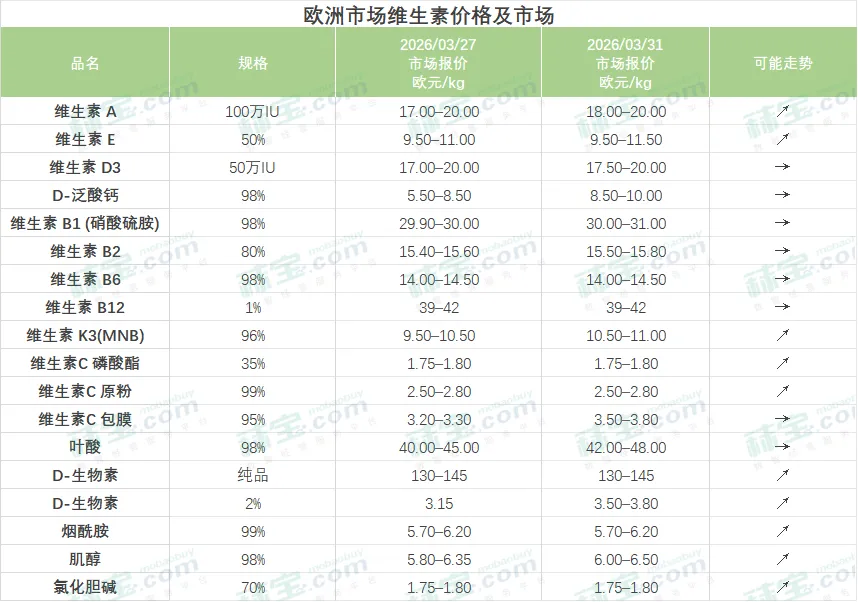 欧洲市场维生素价格及市场