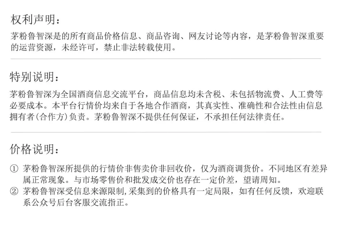 ※行情价:酒商调货价,不考虑物流运输人工成本,每个地区调货价有几十块浮动属正常现象。