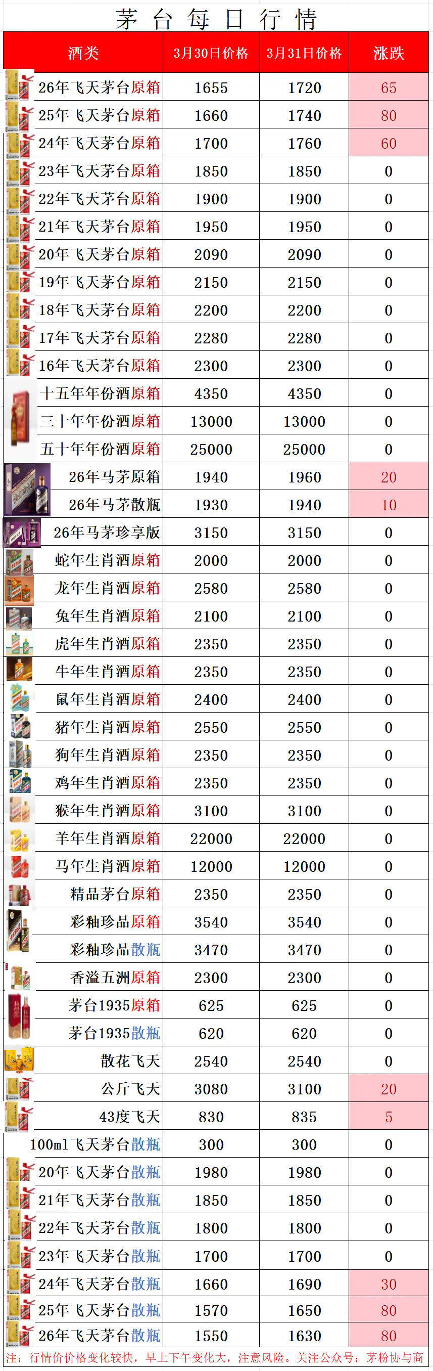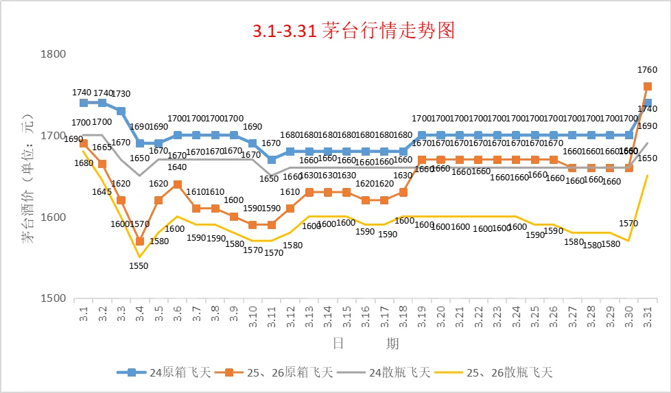 针对这一涨价计划,茅台市场方面,26散飞1630,26整箱1720,普涨80左右。