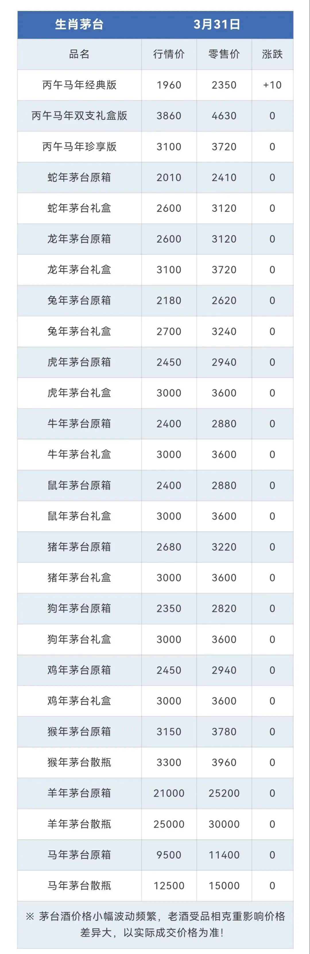 ※行情价:酒商调货价,不考虑物流运输人工成本,每个地区调货价有几十块浮动属正常现象。