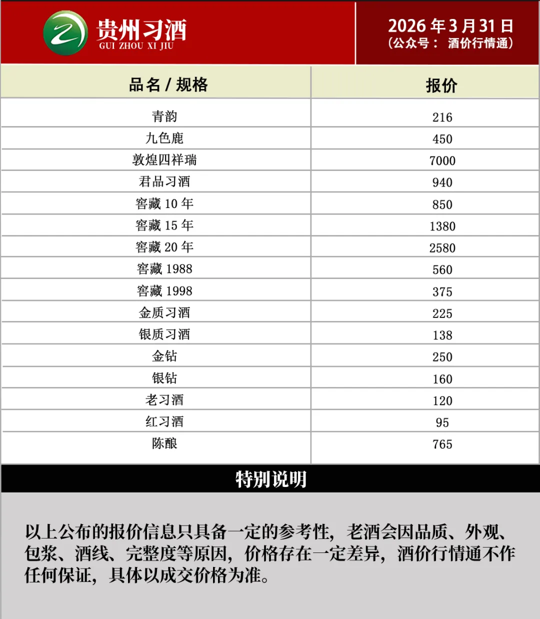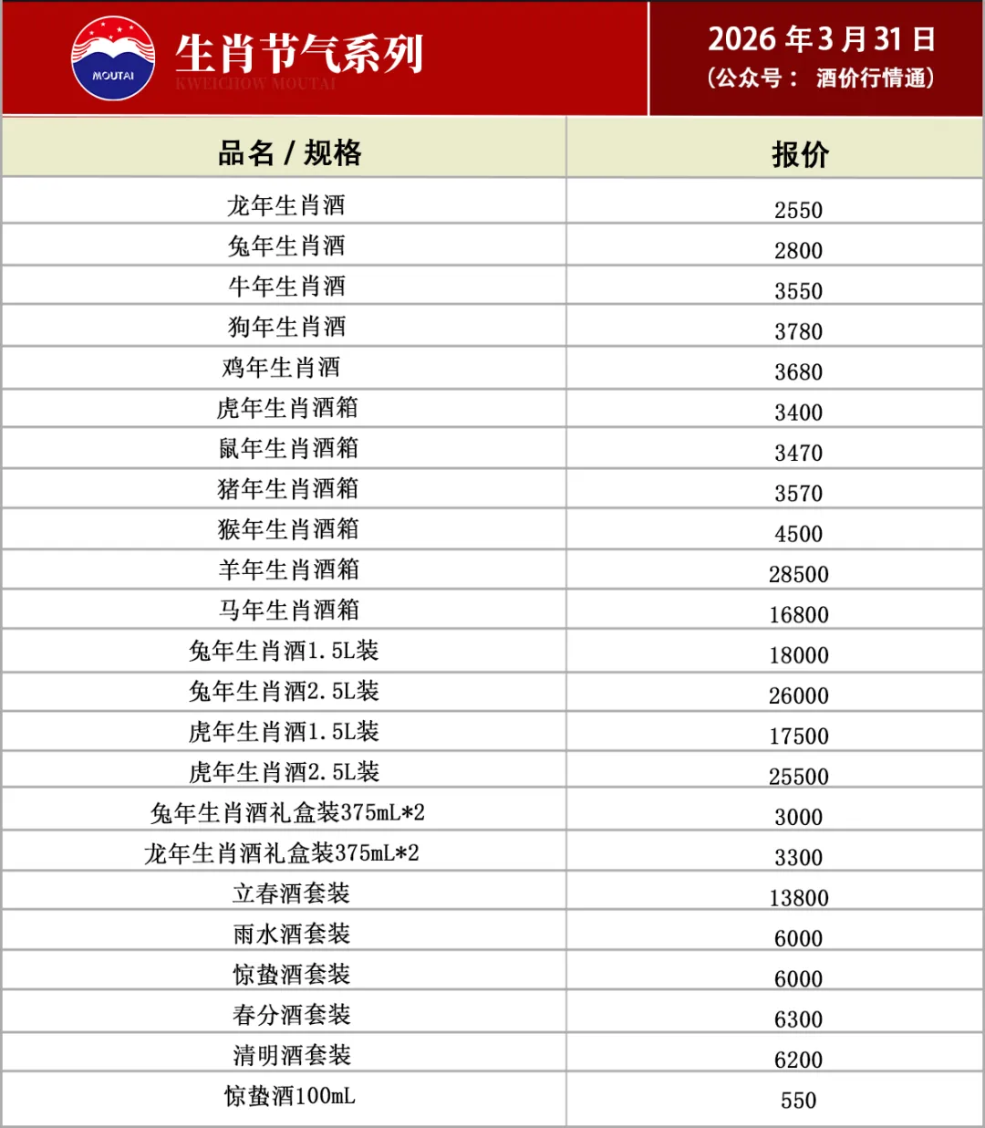 飞天茅台暴涨!!名酒礼品3月31日回收行情(有报表)