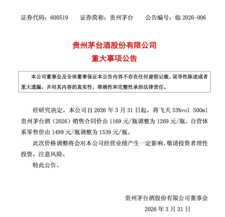 2026年,白酒市场正在发生底层逻辑的转变。茅台这次涨价不是行情的起点,而是一个旧时代的句号。