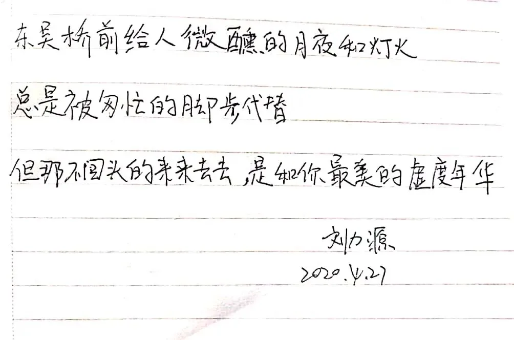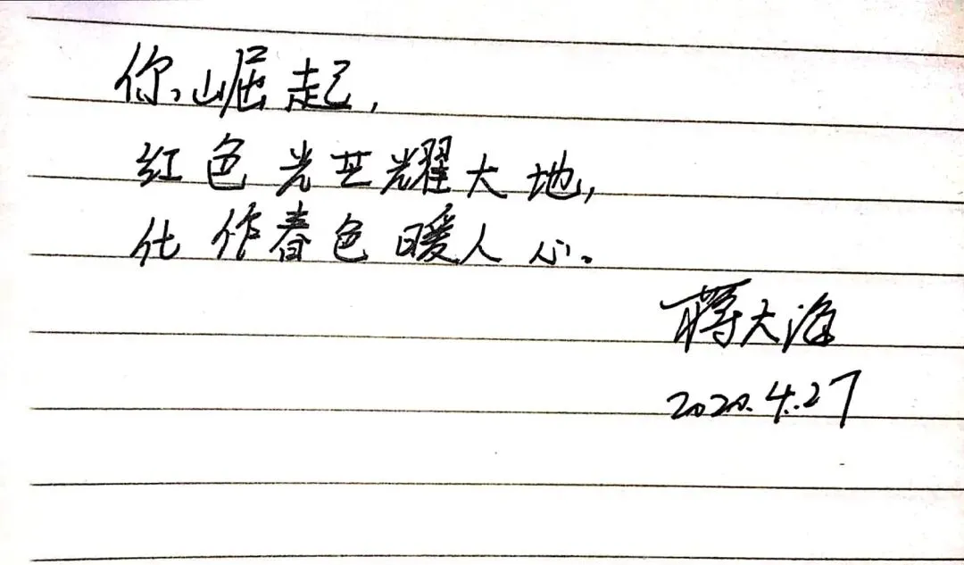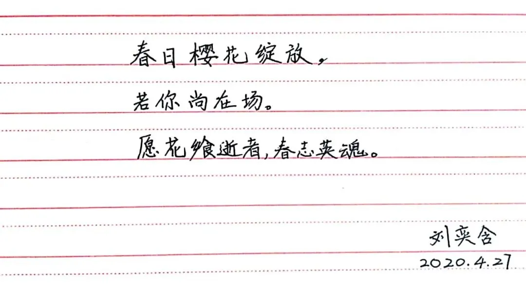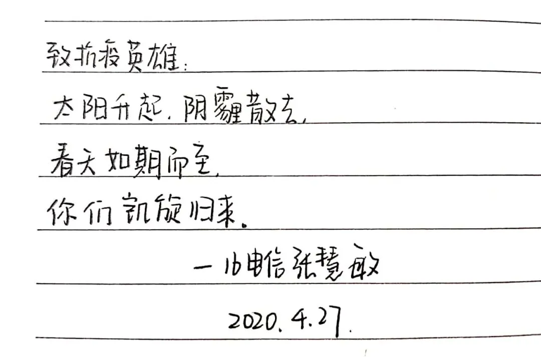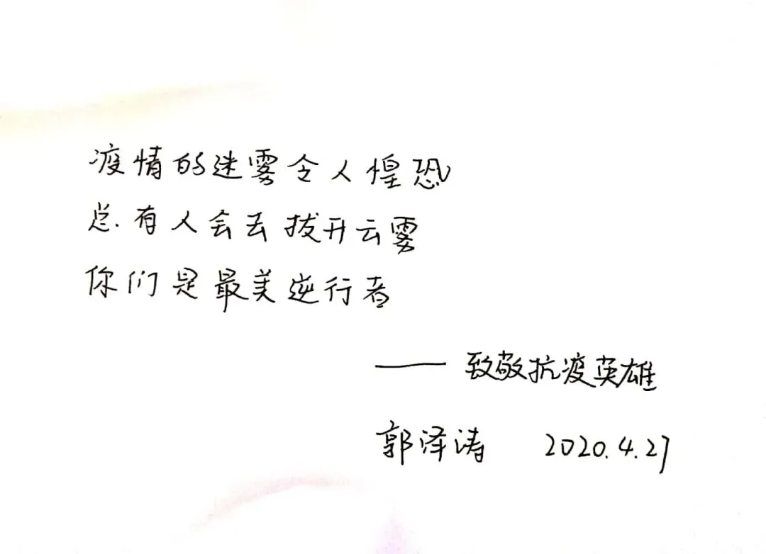 诗歌的发展历史悠久,在中华民族文明传承中有着重要地位,尽管时代变迁但是诗歌仍然是我们中华儿女表达情感的重要的方式之一。今天我们支部所有党员同志用三行情诗的方式,向战役中的英雄、美丽的母校、伟大的祖国表达自己心中的敬意和祝福,在泼墨挥毫间见真情,在师生共写美好祝福中励志再出发。下面,让我们一起来欣赏一下各位党员同志们的三行情诗。
