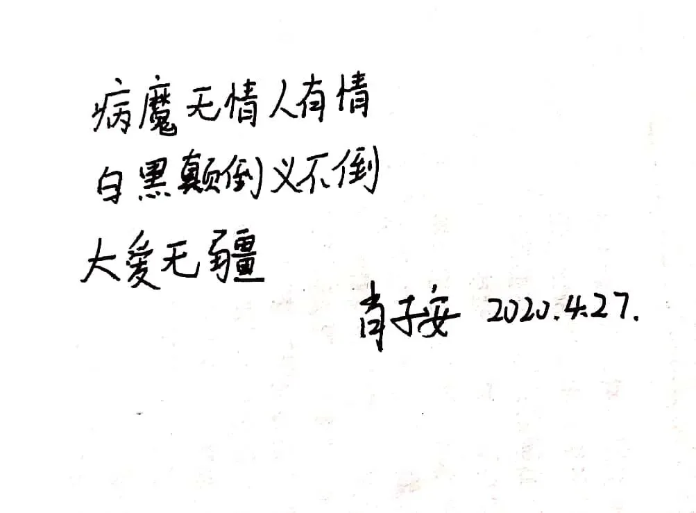 支部党员同志们一一用自己的三行情诗表达了对抗疫英雄致敬、向母校华诞的预祝以及对伟大祖国祝福。纸短情长,我们对英雄的爱戴对母校对祖国的热爱永无止尽。疫情还没有结束,战“疫”还在继续,不获全胜,我们绝不收兵!历史告诉我们,中华民族从来不怕艰难困苦,只要我们紧跟党走万众一心,必将克服千难万险,取得最终胜利,实现中华民族伟大复兴中国梦.