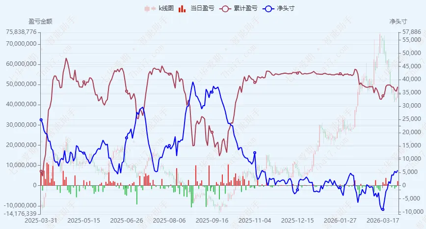 合成橡胶:因国泰君安等顶级主力资金在高位持续加仓多单,价格表现非常坚挺。该品种作为原油炼化末端产品,需求稳定(尤其来自轮胎行业),且难以被完全替代。空头主力华泰近期快速翻空加仓,目前浮亏约5000万,但其属于二线资金,无法与国泰君安、永安、东证等顶级多头主力抗衡。