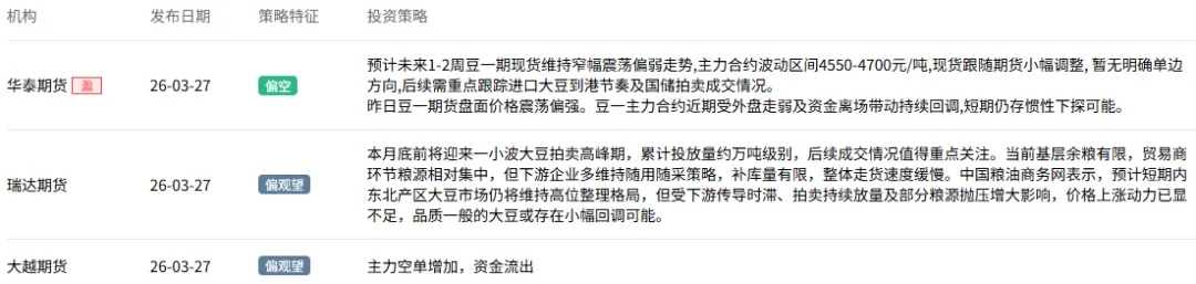 豆一/豆二:资金博弈激烈。豆一上,外资(高盛、摩根)和国内顶级资金集体做多,可能与特朗普访华的农产品贸易预期有关。豆二上,国泰君安、永安等则为空方主力,形成多空对峙。