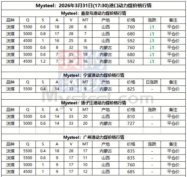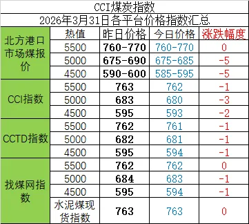 31日港口市场动力煤价格暂稳运行。港口库存持续累积,产地部分煤矿调降,市场情绪明显回落,此轮上涨行情已基本结束。终端在阶段性刚需采购后回归观望状态,整体库存处安全水平以上,询货问价意愿较低,现货贸易商出货难困难,实际成交稀少。预计短期内港口煤价或有小幅回调空间,需持续关注大秦线检修带来的实际影响及内外贸价差变化。