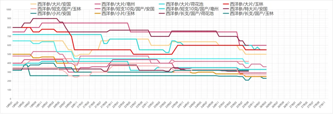 西洋参价格尚无明显变化,货源批量走动正常,目前市场软质片较大片报价在550-600元之间不等,1.8的软质片报价在500-520元之间不等,1.2-1.4的中片软质片报价在350元以上400元左右;短支10克货多要价在300元以上350元左右,长支10克货报价在280-300元之间不等。