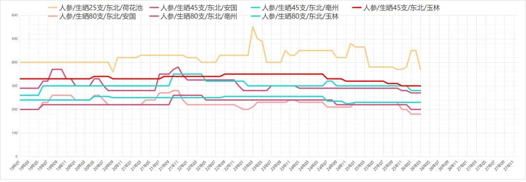 人参价格基本稳定,最近批量走动平稳,目前市场生晒参全检合格药厂货多要价在160-180元不等,40支左右的因质量不等报价在250-300元。