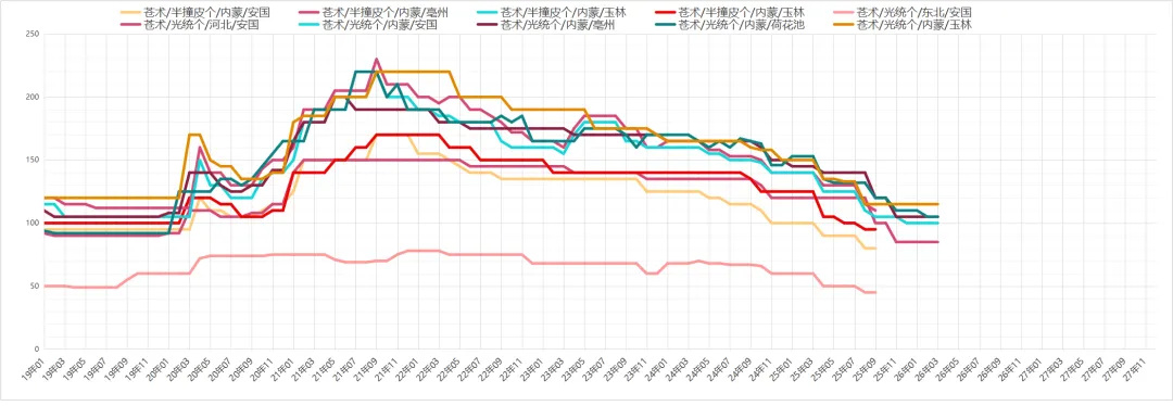 苍术行情上涨,近段时间商家、药企货源采购量放大,产区、市场货源走动畅快,现家种片价格在35元左右,后市值得关注