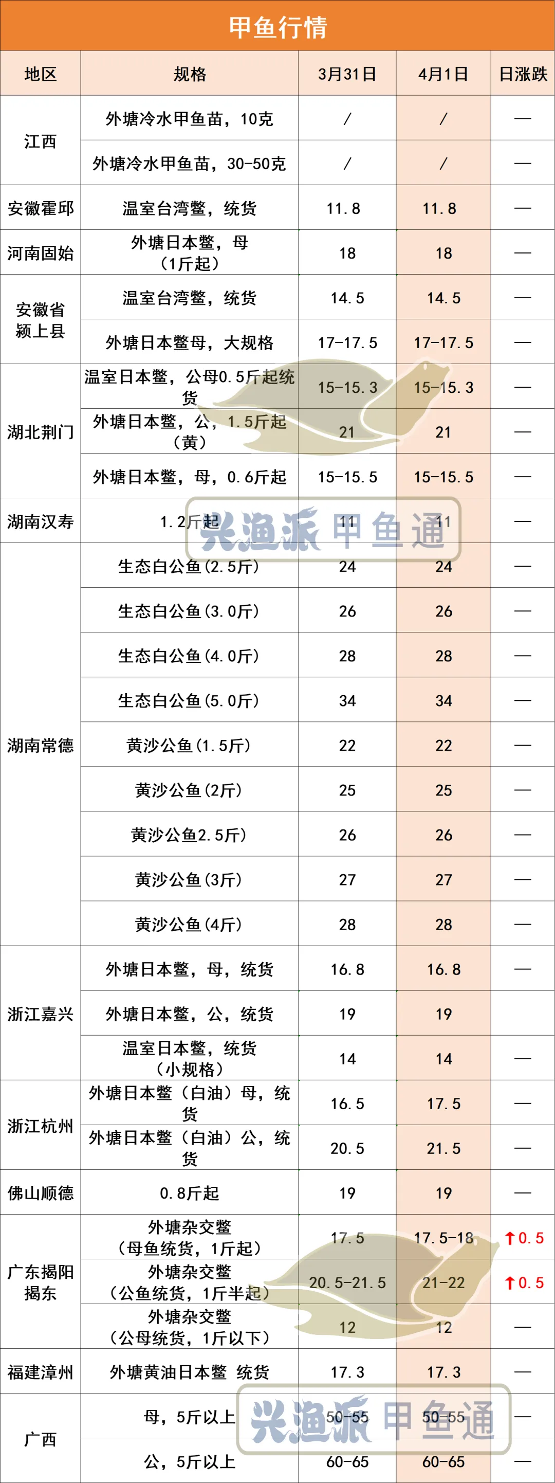 4月1日甲鱼出塘参考价
