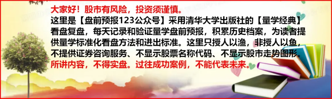 🔔预报提醒:关注【盘前预报123】公众号,每日晚8:00前推送盘前预报+精准三线+风口预判+涨停梯队,助您在四季轮回中,始终走在行情前面!