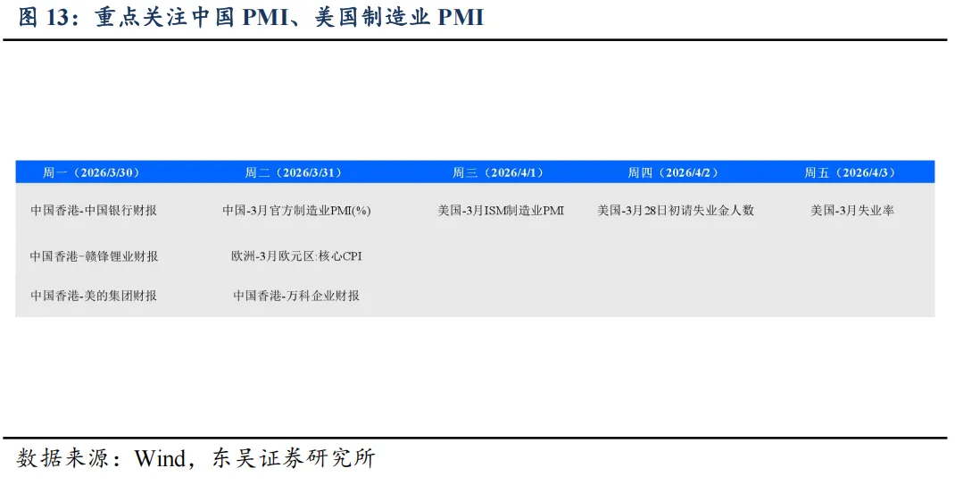 基本面方面:1)3 月 31 日,中国 3 月官方制造业 PMI,欧洲 3 月欧元区核心 CPI;2)4 月 1 日,美国 3 月 ISM 制造业 PMI;3)4 月 2 日,美国 3月 28 日当周初请失业金人数;4)4 月 3 日,美国 3 月失业率。