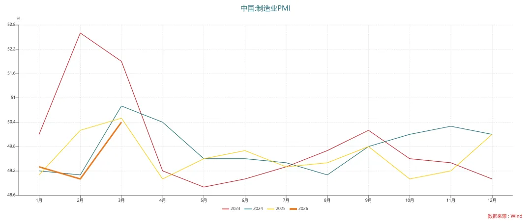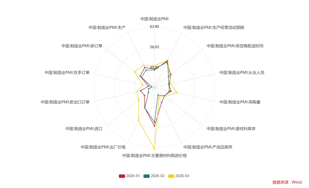 本该春光明媚的三月,市场却是惊雷骤起,回头去看颇为颠簸,很多资产的波动率陡然上升,大类资产间的相关性在短期也出现了急剧变化,导致不同资产组合持有人的体感天差地别。对于偏权益和很多宏观多资产策略而言,这个三月着实有些难熬。其实在上月末的《好事能否过三?》已经表达了对于三月份相对保守的看法,不过彼时是基于国内权益市场的季节性因素和政策预期差的思路,认为内需方面政策没有超预期的情况下一二月的行情很难延续。然而市场总是会给人以三倍标准差之外的惊喜,内需政策确实没有超预期,但中东的战火搅动了市场的节奏,整个三月的权益市场最终呈现出避险的格局,宽基指数普跌,仅有红利微涨(图1)。不过外部冲击带来的流动性预期扰动仅仅只是故事的一部分,大A本身不便宜也是调整的基础,上月末的时候估值处于历史高位,而经历三月份的调整,目前也说不上很便宜(图2)。另外,资产间相关性在这轮外部冲击之下也出现了短期相关性和长期相关性偏移的情况(图3)。最典型的是黄金,其与权益资产的长期相关性(750天或者更长维度)很低 ,但在最近一个月的市场中其与大A和恒科的相关性达到了0.7以上,表现得更像是新兴市场的权益资产而非避险资产。另外,长久期债券和权益资产在长期为轻度负相关,然而三月的收益率曲线呈现陡峭化走势,短久期下行,长久期却上行,30年国债ETF在三月份为负收益,与权益资产阶段性变为正相关。这种格局让包括全天候策略在内的多资产配置策略非常难受,资产的相关性和波动率同步提升,导致净值短期出现显著回撤。组合中只要没有能化的布局,就很难对冲组合的波动,然而即使是能化,在这个月中间也因为战局的消息面大幅波动,如果节奏有误,可能不会贡献对冲效果,反而增加了摩擦和损失。所以这个三月给我上了很好的一课。一是行情线性外推是危险的,在一个地缘越来越动荡的时代,非线性的变化随时可能会发生;二是【贵】本身就是一种风险,它意味着面对冲击时的脆弱性;三是多元化的配置并不是简单的分散到不同资产当中,也不是简单的参考历史相关性,要基于不同资产的底层逻辑和风险因子做多元化配置,确保组合的收益和风险来源逻辑的多元化,而这其实并不简单。不过好在最近几天似乎资产间的相关性向长期趋势有了一些修复,只是准备需要做在风平浪静的时候,水则资车,旱则资舟,有备无患。今天还出了PMI数据,制造业PMI重新回到50上方,读数50.4,乍看还是略超预期的。同时,价格分项的环比变化也非常突出,原材料购进价格63.90,出厂价格55.40(图4),创下了近几年的新高,看起来是周期复苏和再通胀加速的节奏。不过需要注意的是,3月份的PMI读数季节性是非常显著的,pandemic前的10年,3月份的PMI均值51.69,显著高于年中其他月份尤其是受到春节扰动的2月份(图5)。考虑近几年的情况,同样也是显示出明显的季节性(图6)。另外,价格分项显示出输入性通胀信号(原材料购进价格)的同时,出厂价格读数上行幅度显著小于原材料购进价格,说明价格向下传导依然受到需求的制约,这种情况走到比较极致就是滞胀,并不是很有利于风险资产的环境。