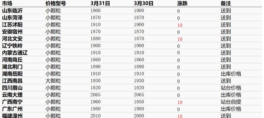 今日行情|2026年3月31日金源公司主要产品市场行情