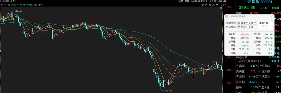 整个三月的市场行情,唯有“煎熬”二字可精准描摹,全程都深陷于消化前期涨幅的“还债”困局之中,每一步前行都显得步履维艰。