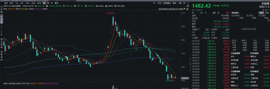 整个市场始终在为一月航天、应用领域的急涨行情“埋单”,行情持续走弱、反复筑底,未有半分像样的反弹之势,寒意尽显。