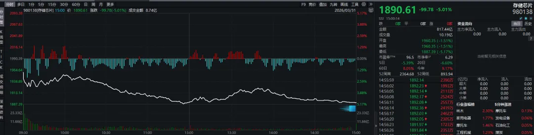 除此之外,科技方向的资金抱团态势,也受美股高位科技股补跌的拖累而承压,尤以存储芯片板块为甚,今日权重个股的负面反馈尤为突出。