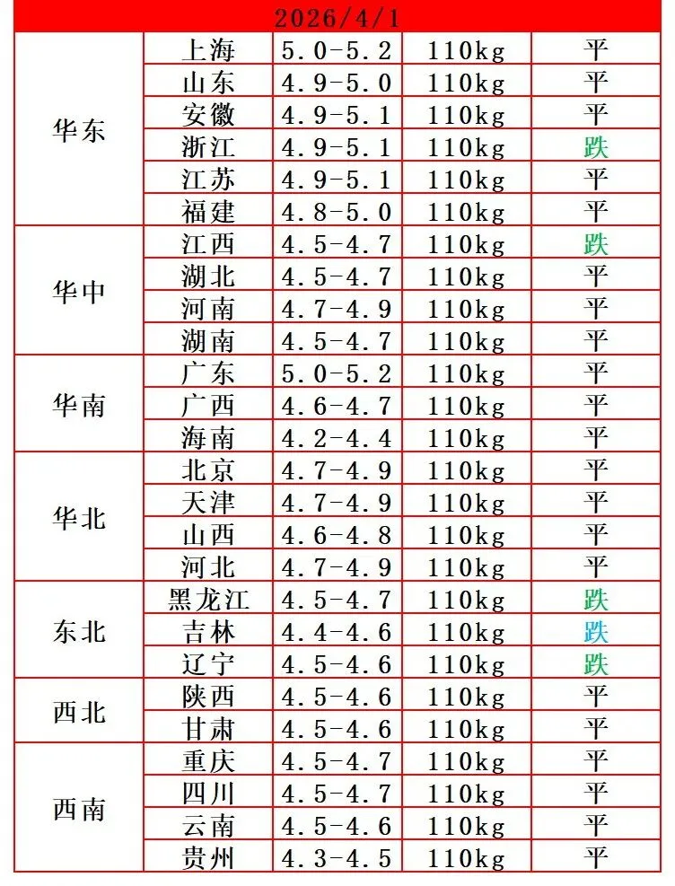 2026年4月1日星期三,鸡蛋行情描述↓ ↓ ↓