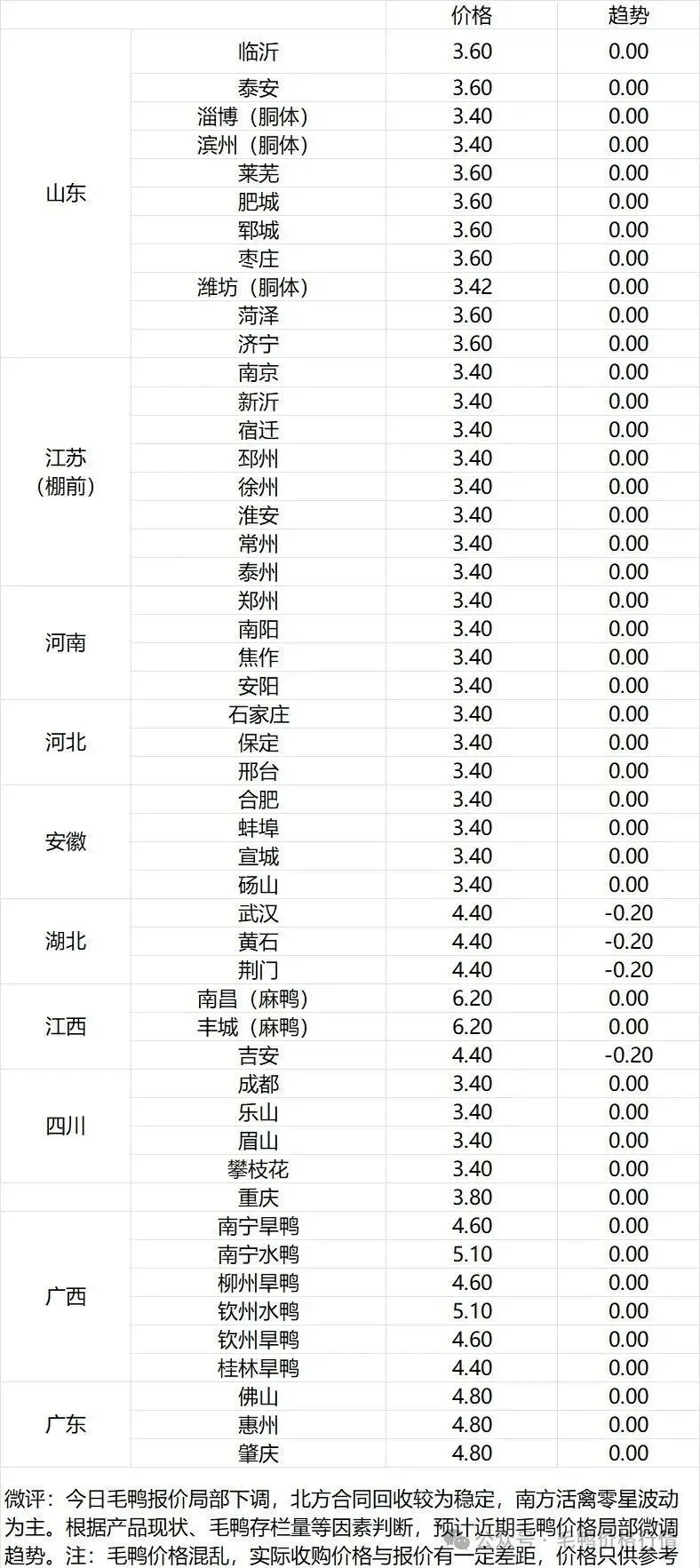 备注: 1、报价为樱桃谷父母代大苗的报价; 2、报价仅供参考,实际成交或受多因素影响有不同; |